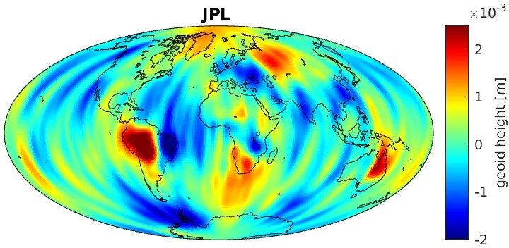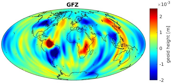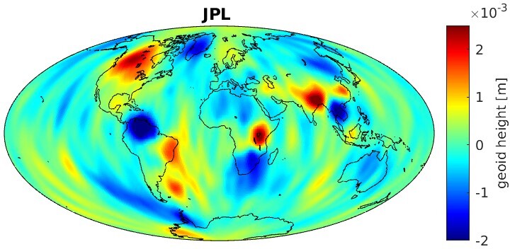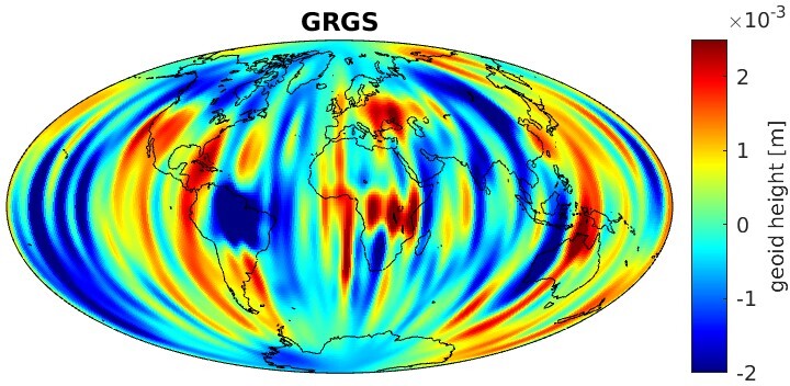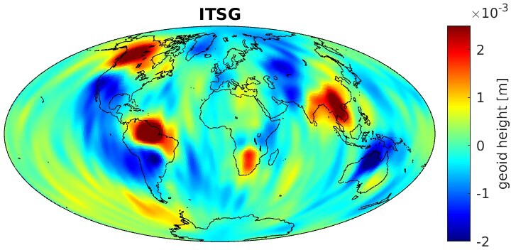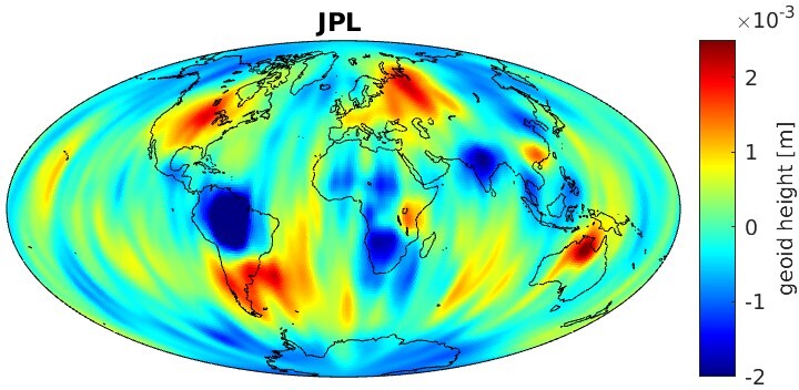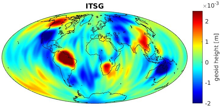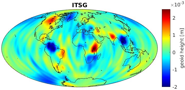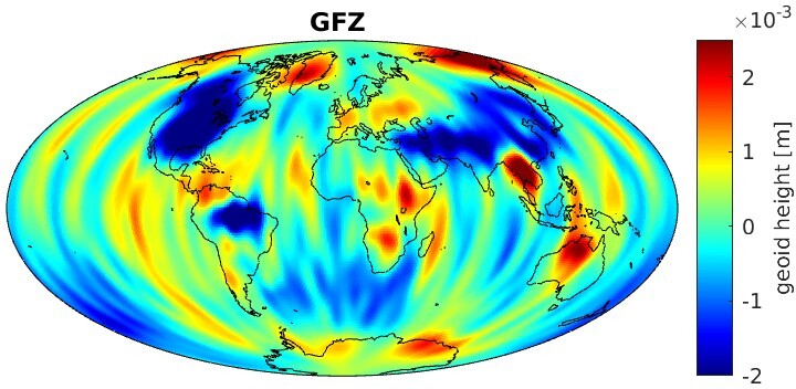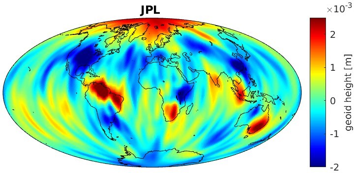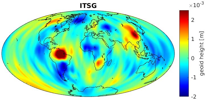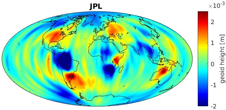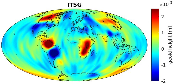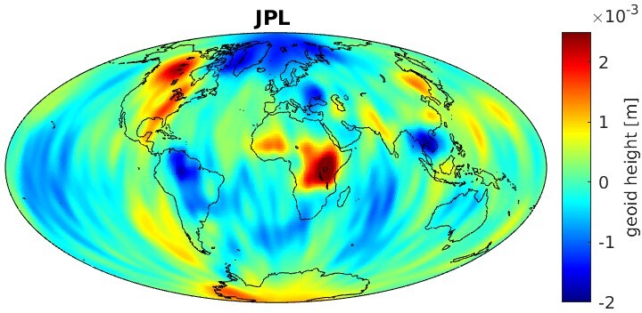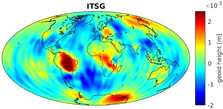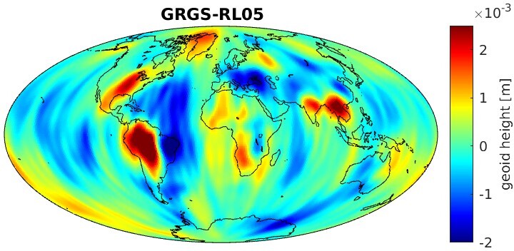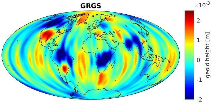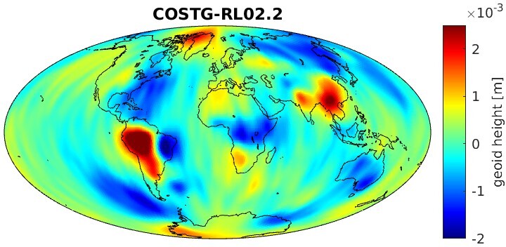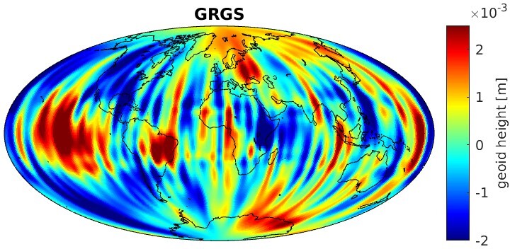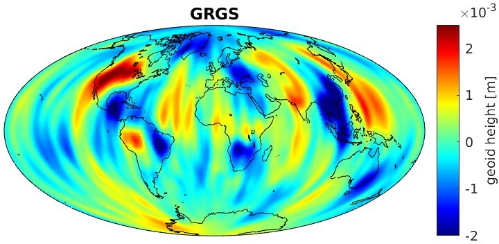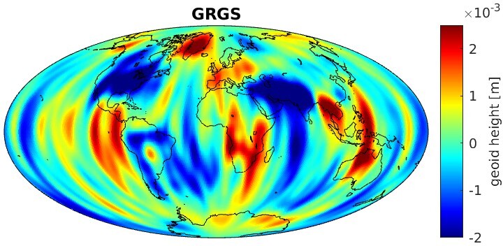 Monthly anomalies are derived by subtraction of a deterministic signal model (bias, trend, annual and semi-annual variations)