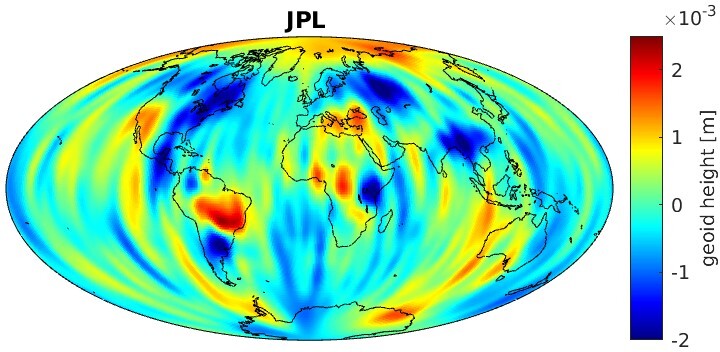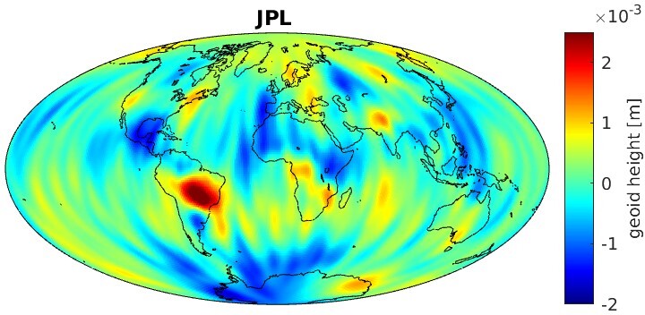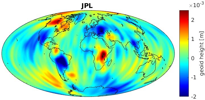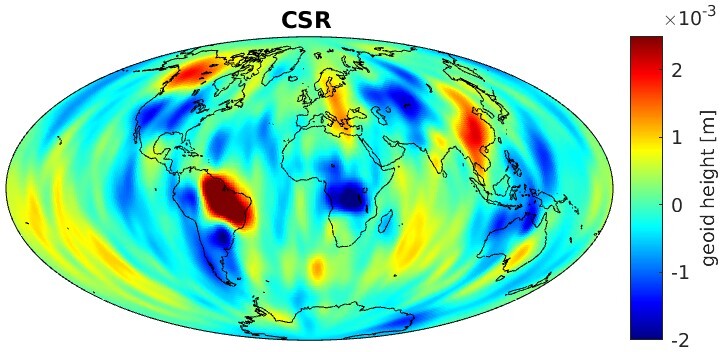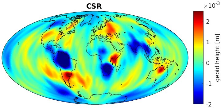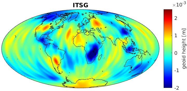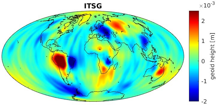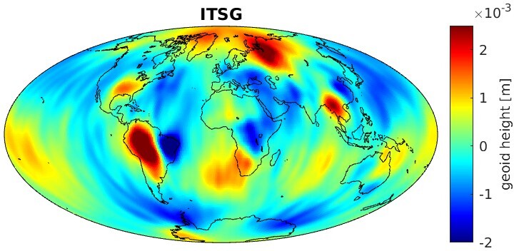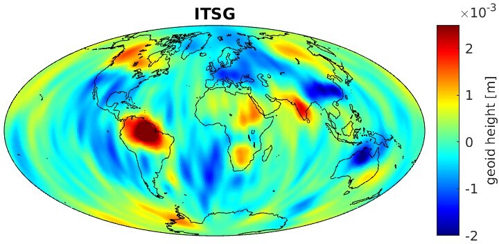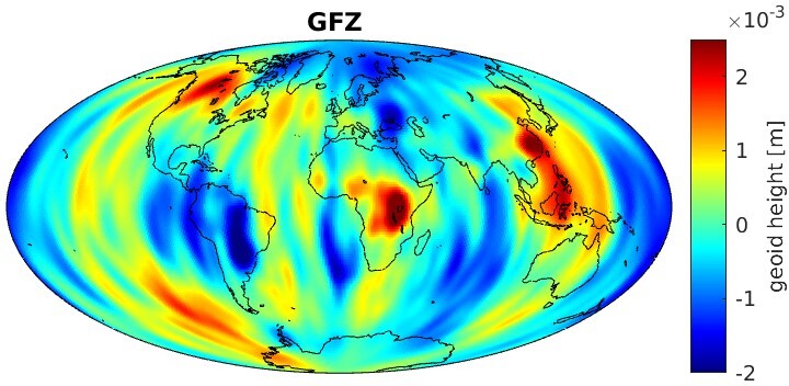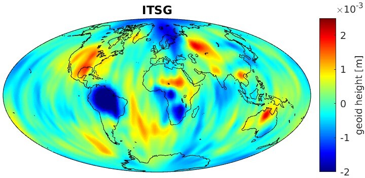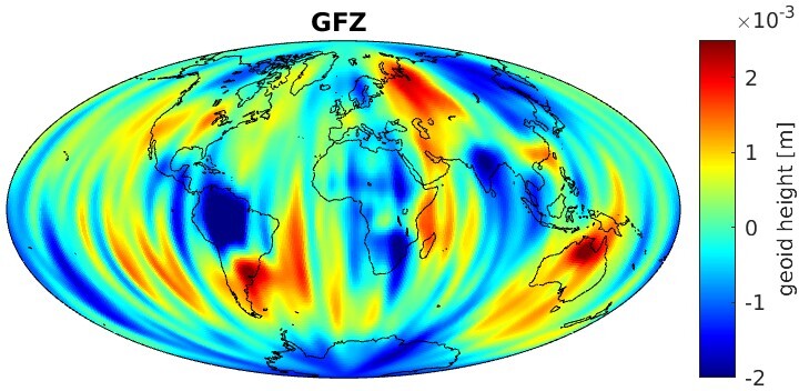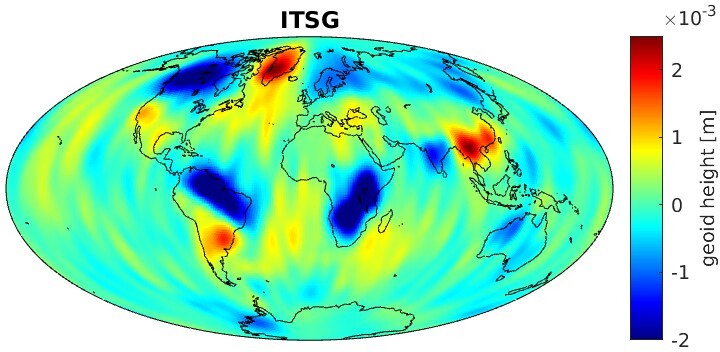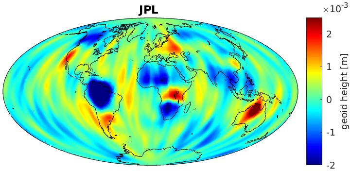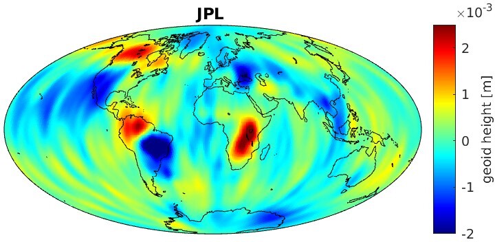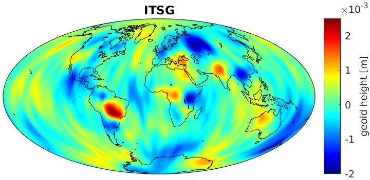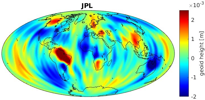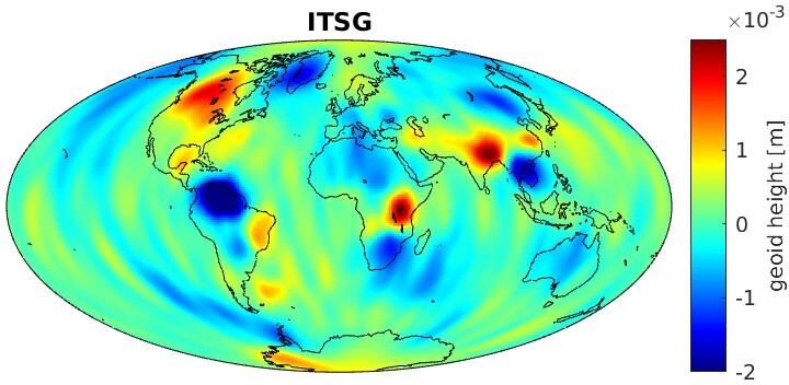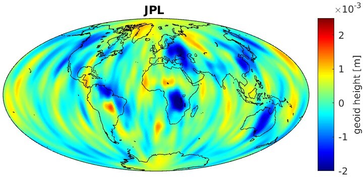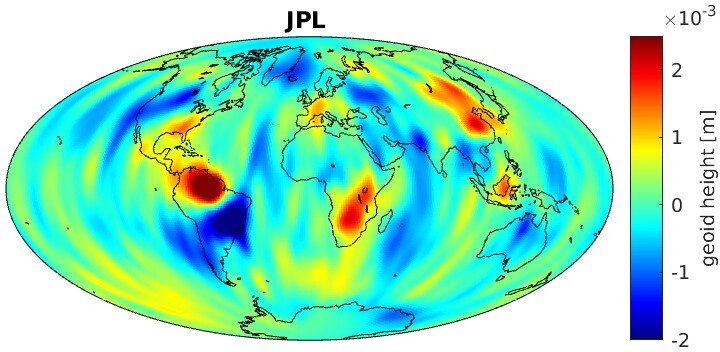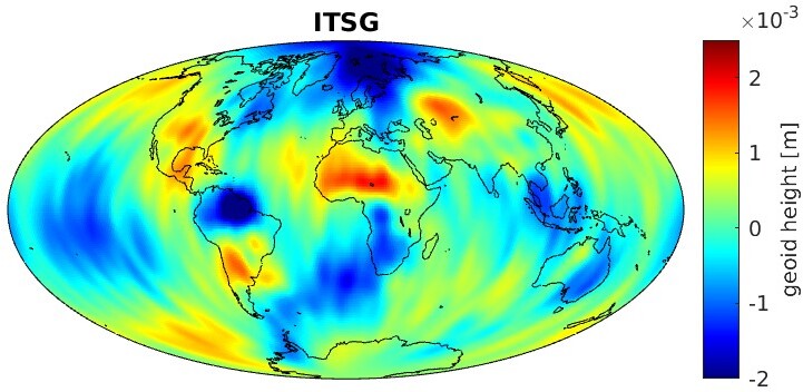 Monthly anomalies are derived by subtraction of a deterministic signal model (bias, trend, annual and semi-annual variations)