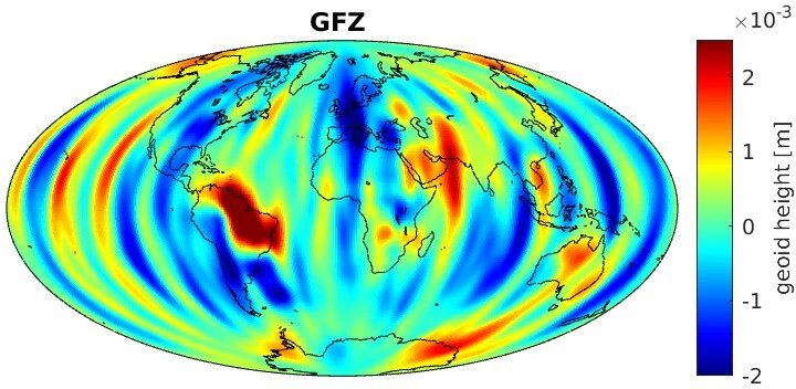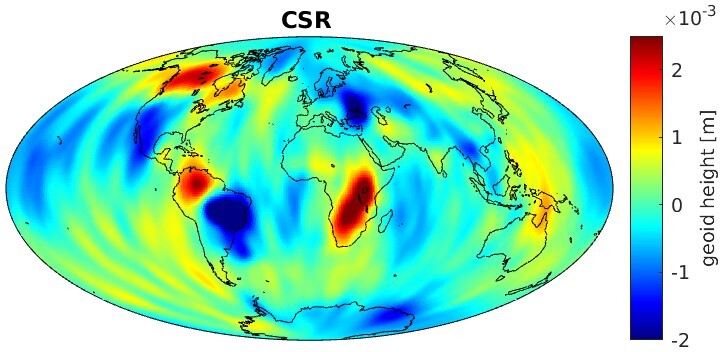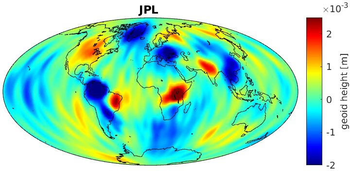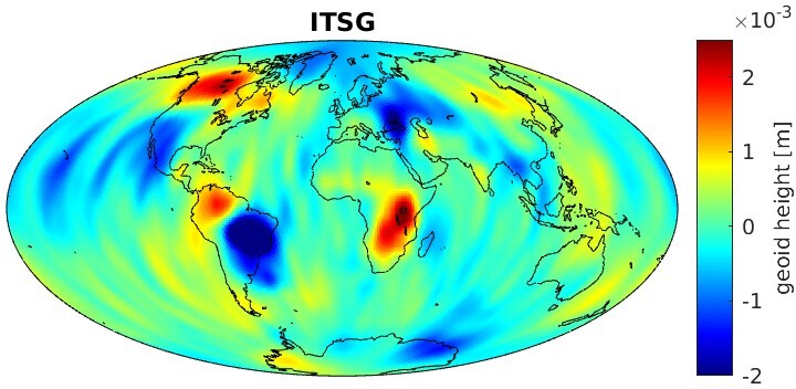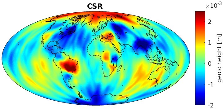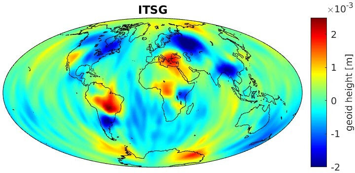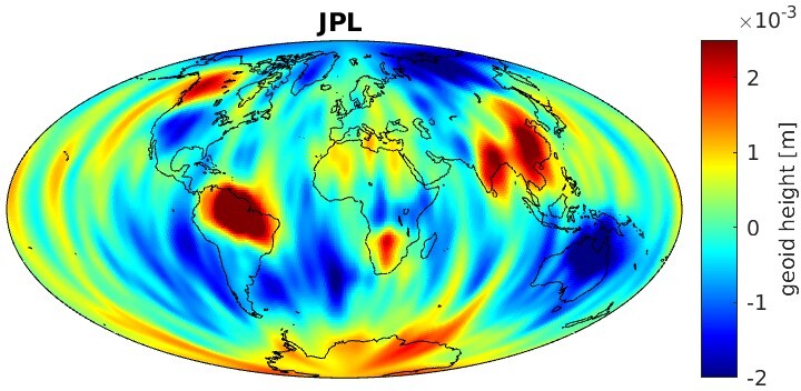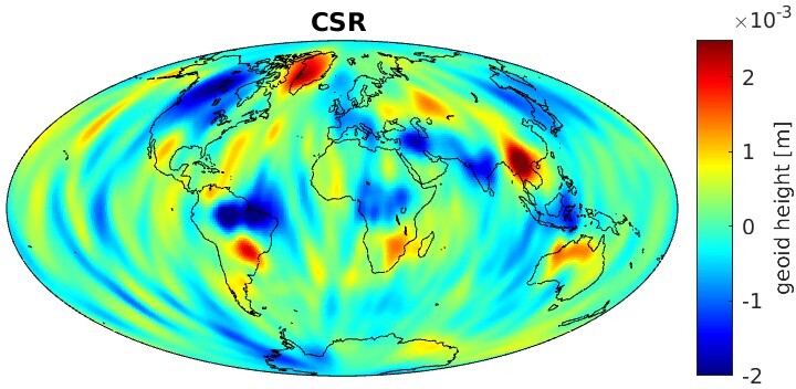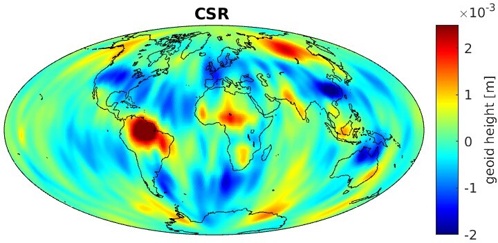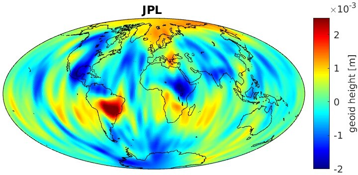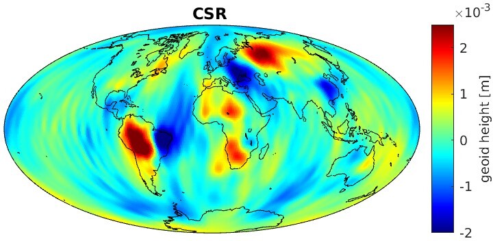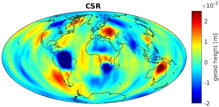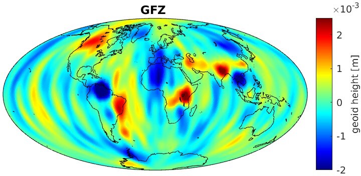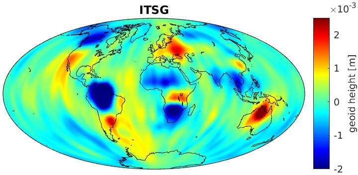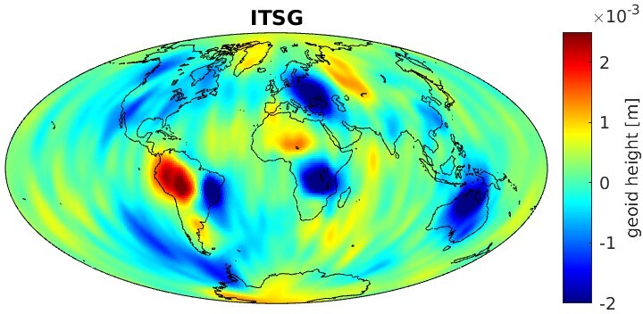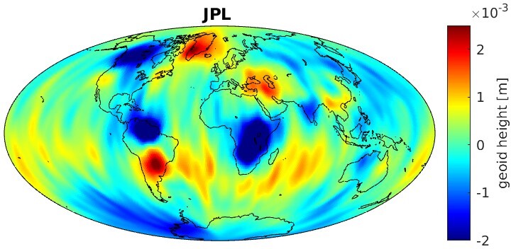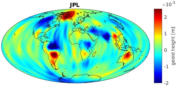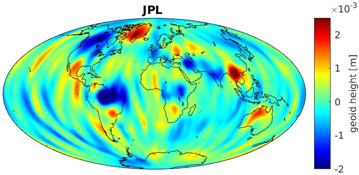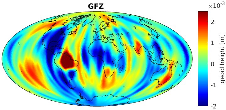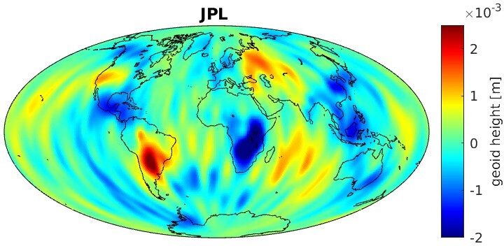 Monthly anomalies are derived by subtraction of a deterministic signal model (bias, trend, annual and semi-annual variations)