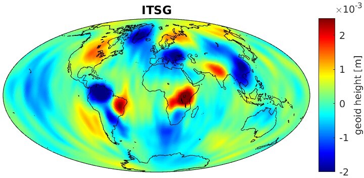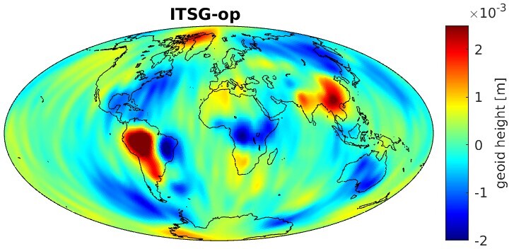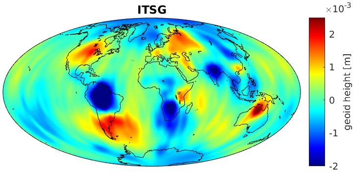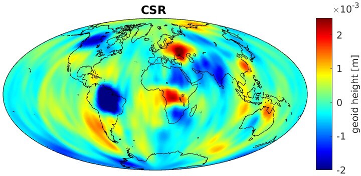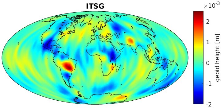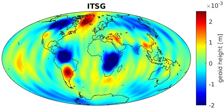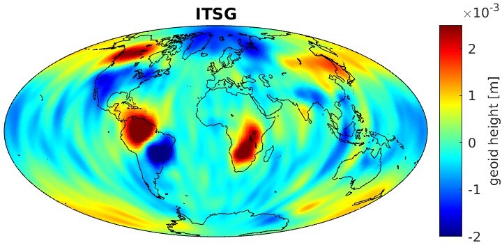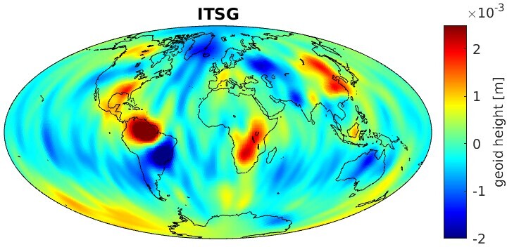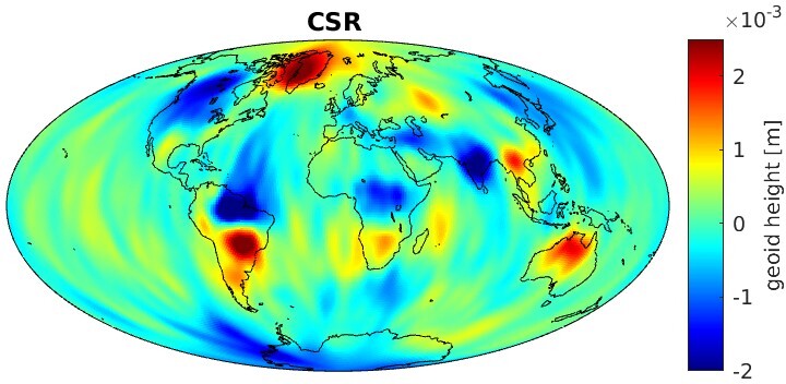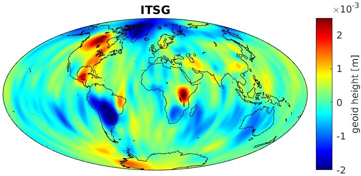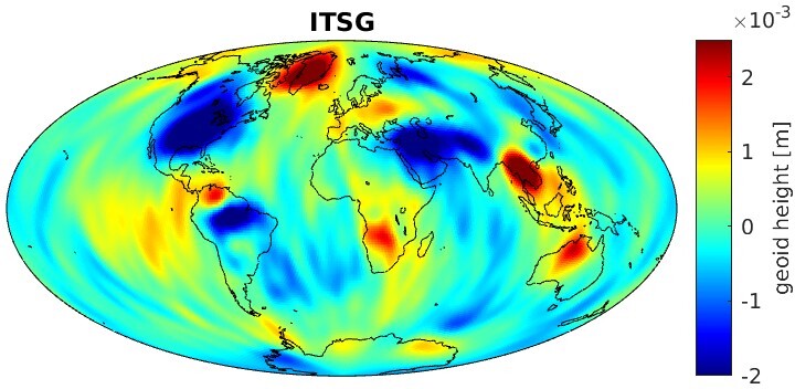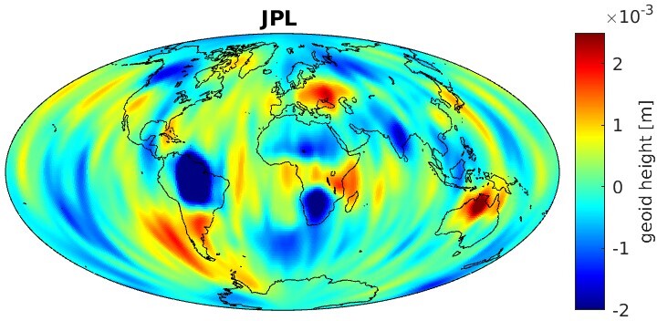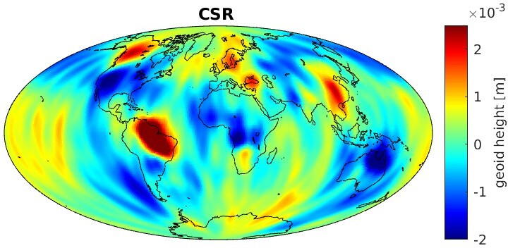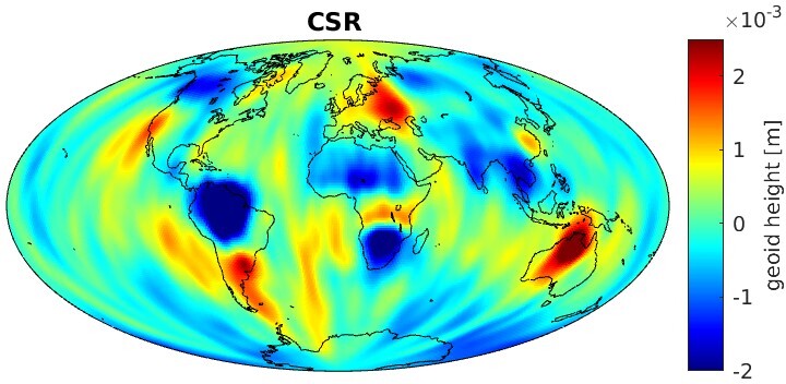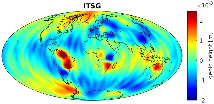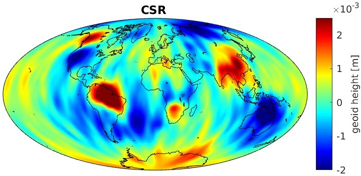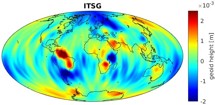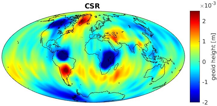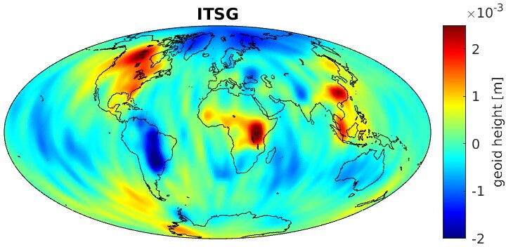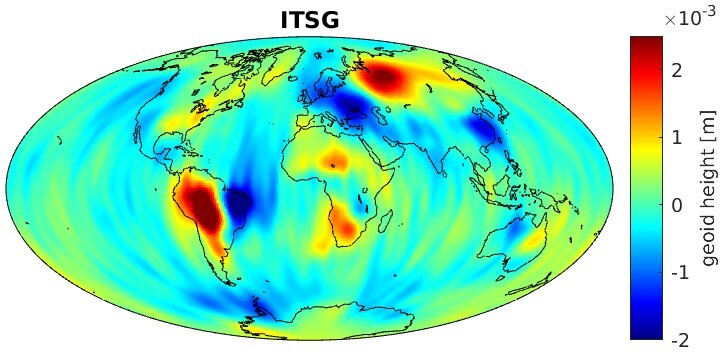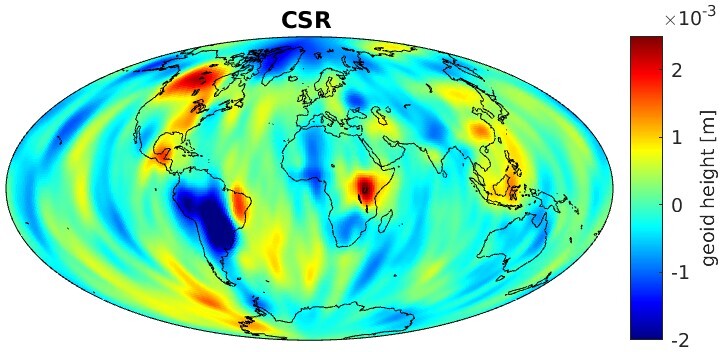 Monthly anomalies are derived by subtraction of a deterministic signal model (bias, trend, annual and semi-annual variations)