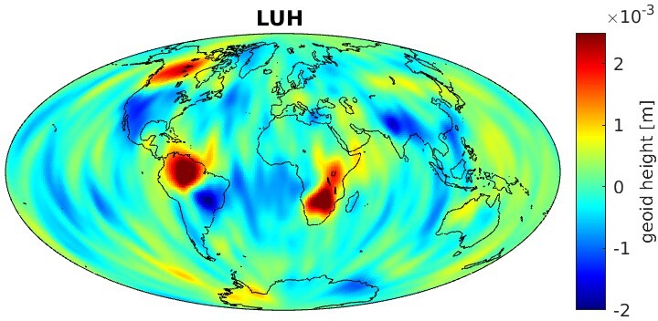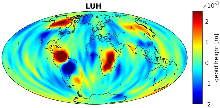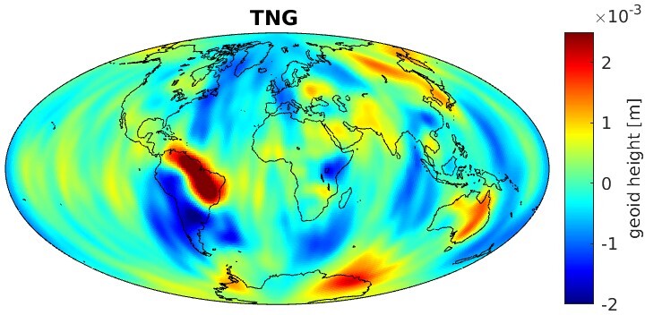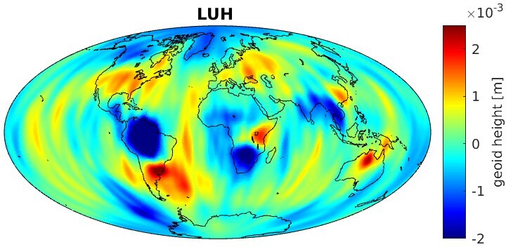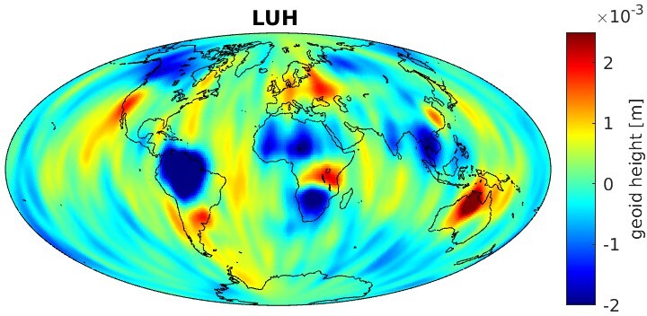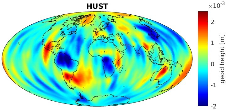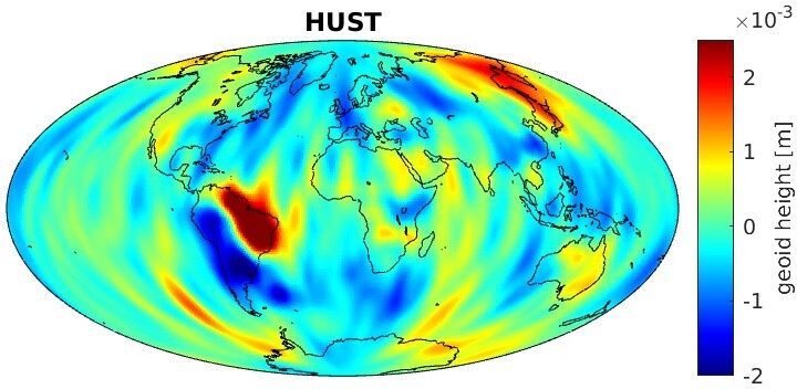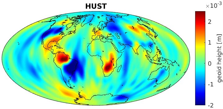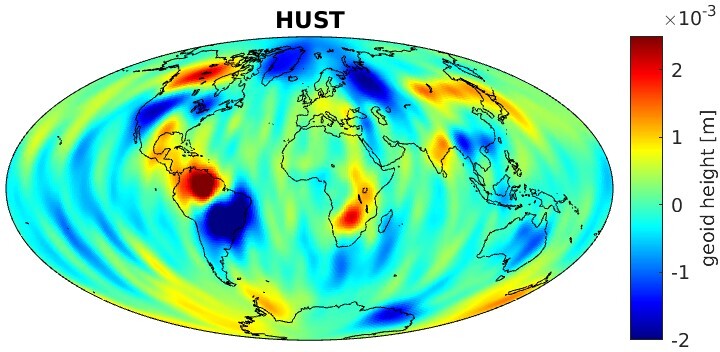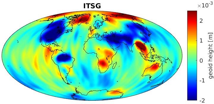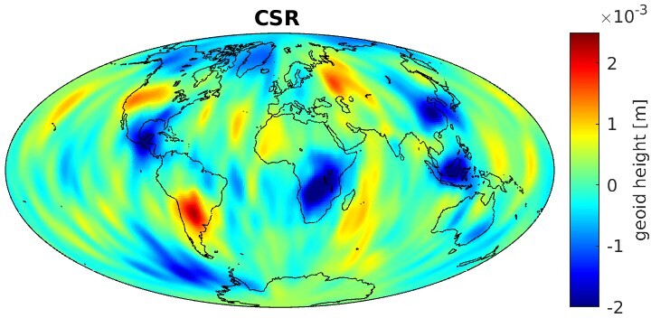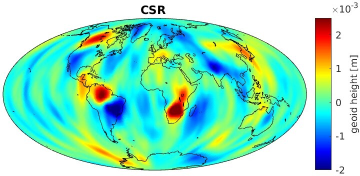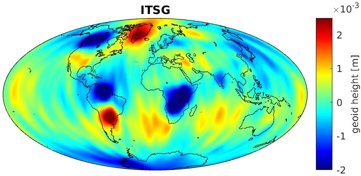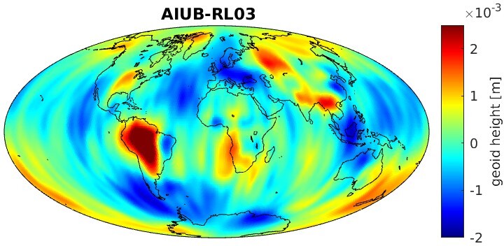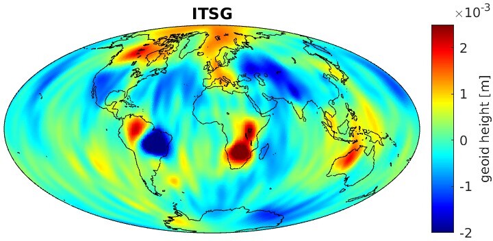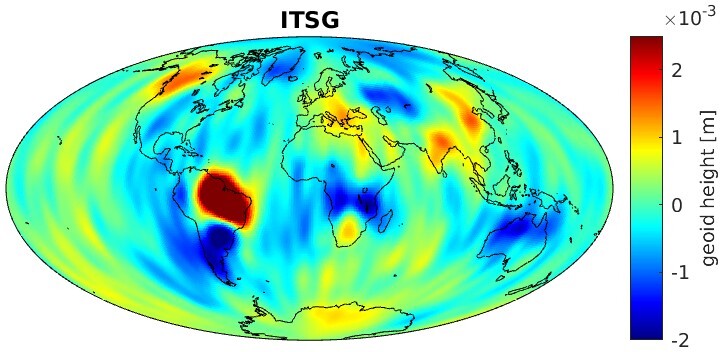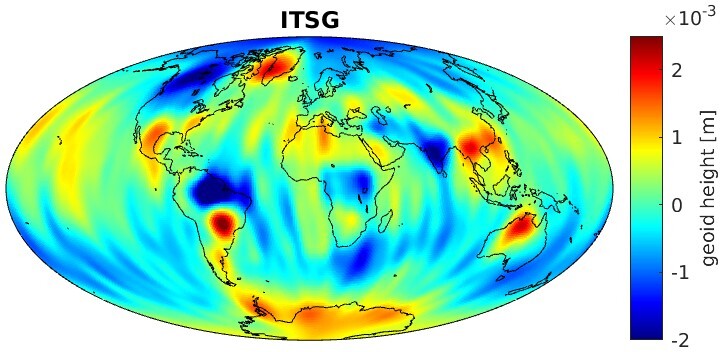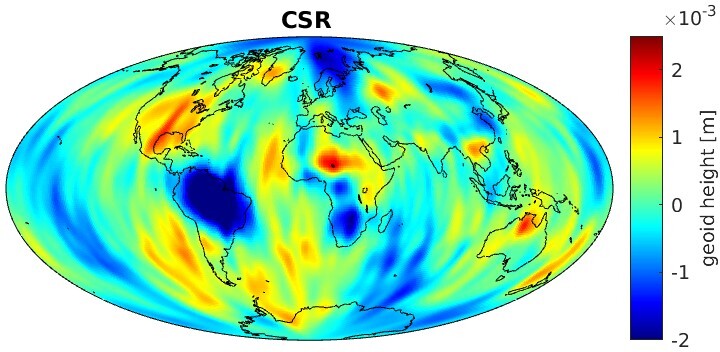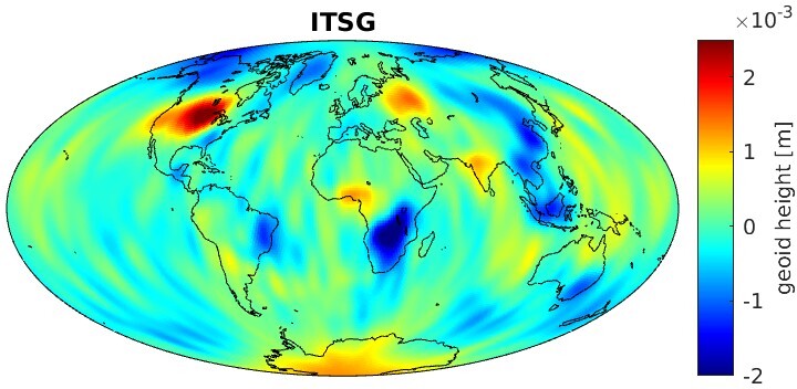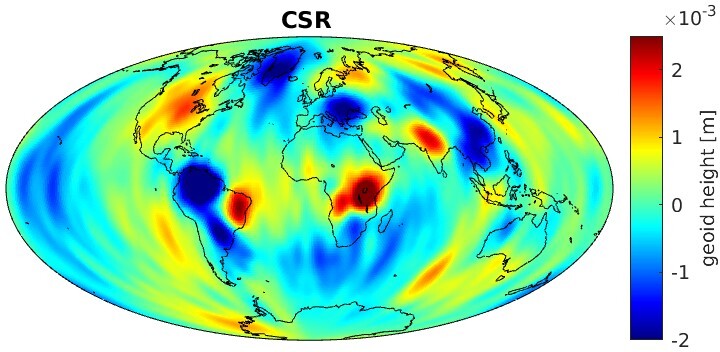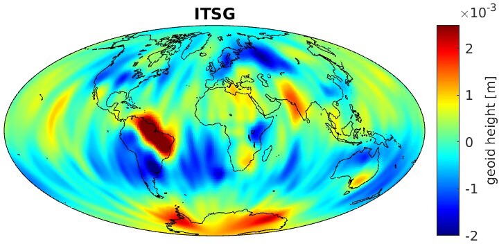 Monthly anomalies are derived by subtraction of a deterministic signal model (bias, trend, annual and semi-annual variations)