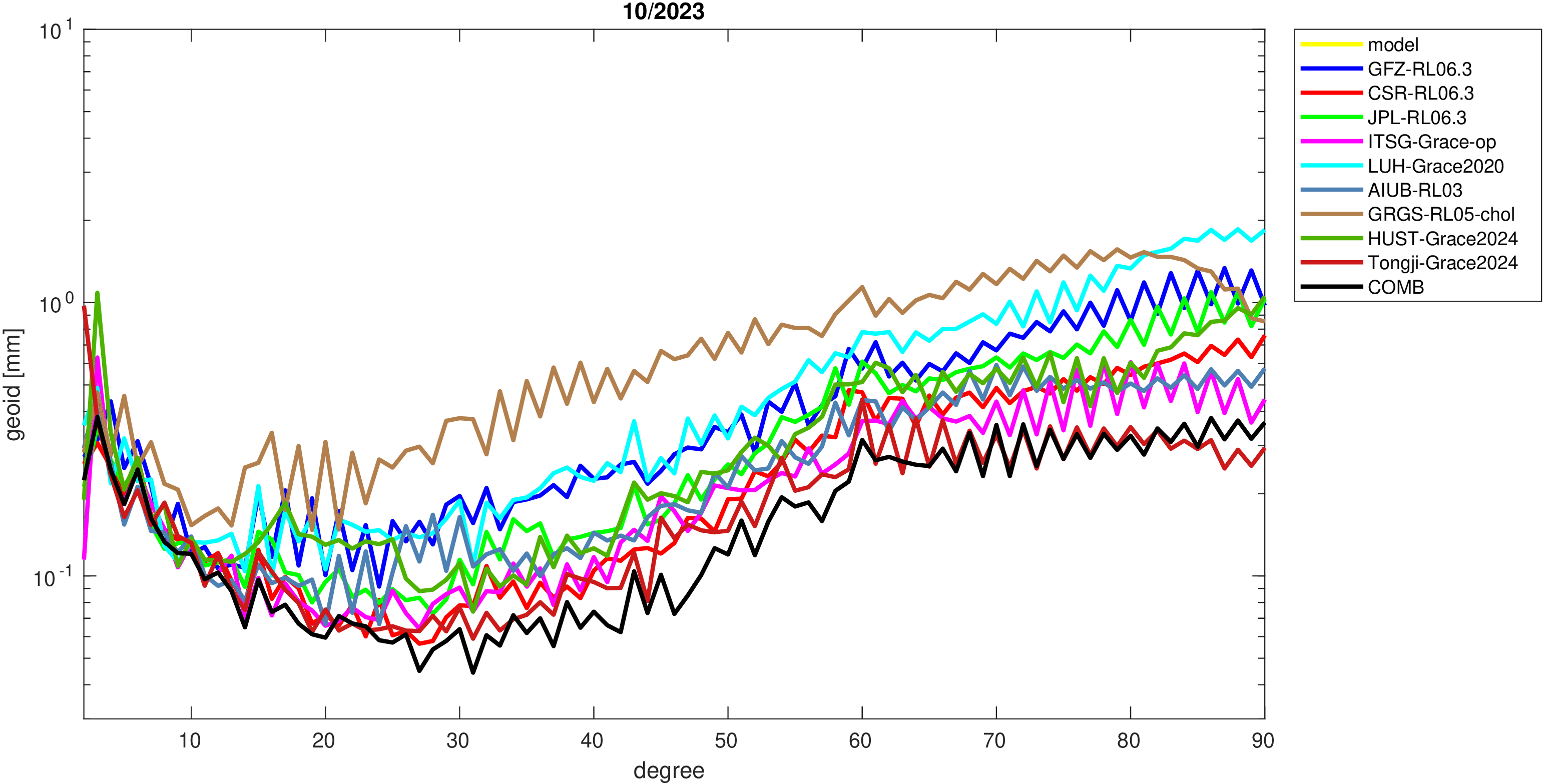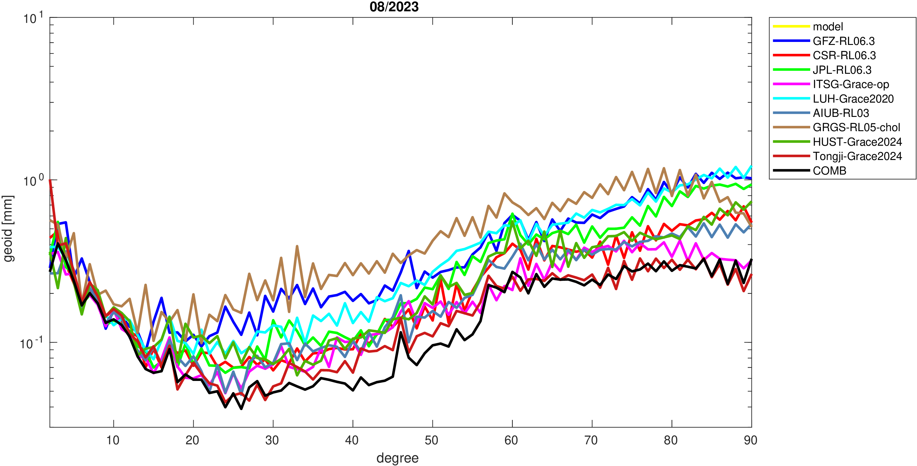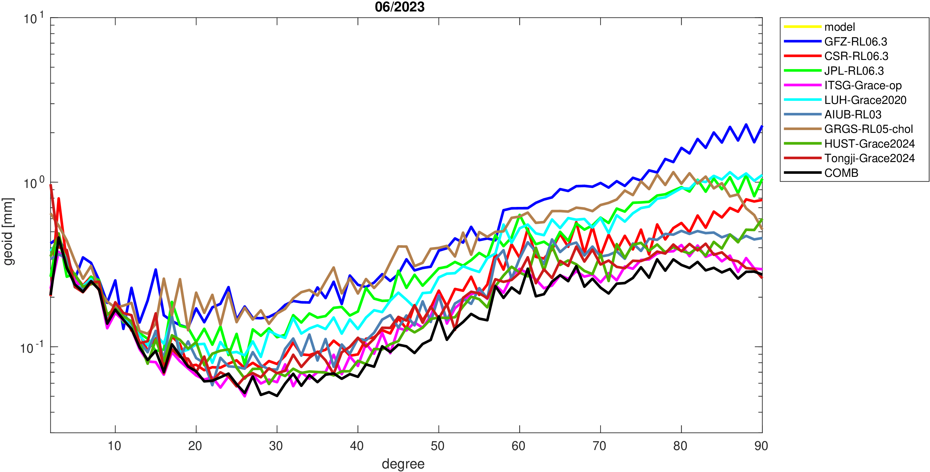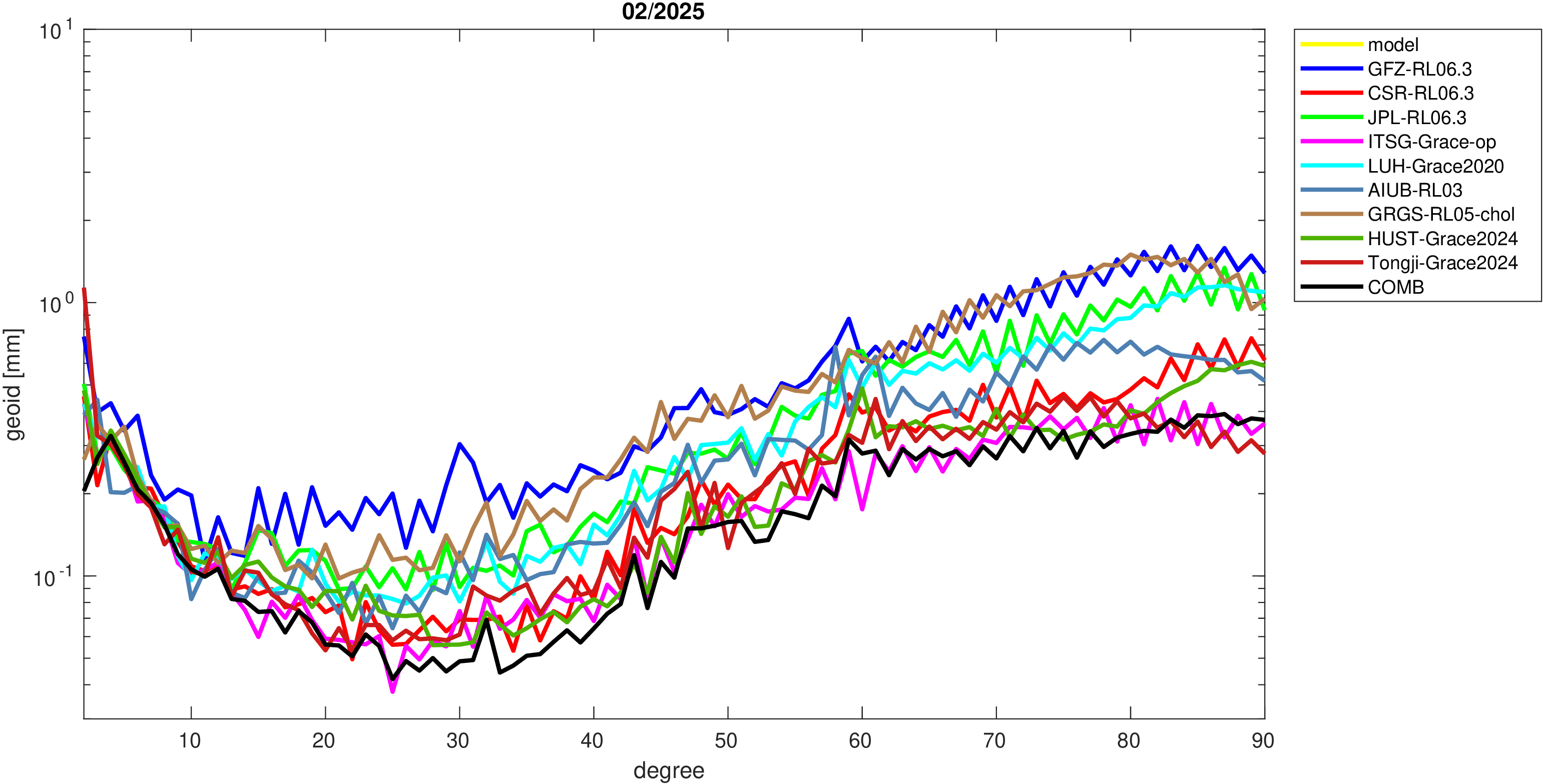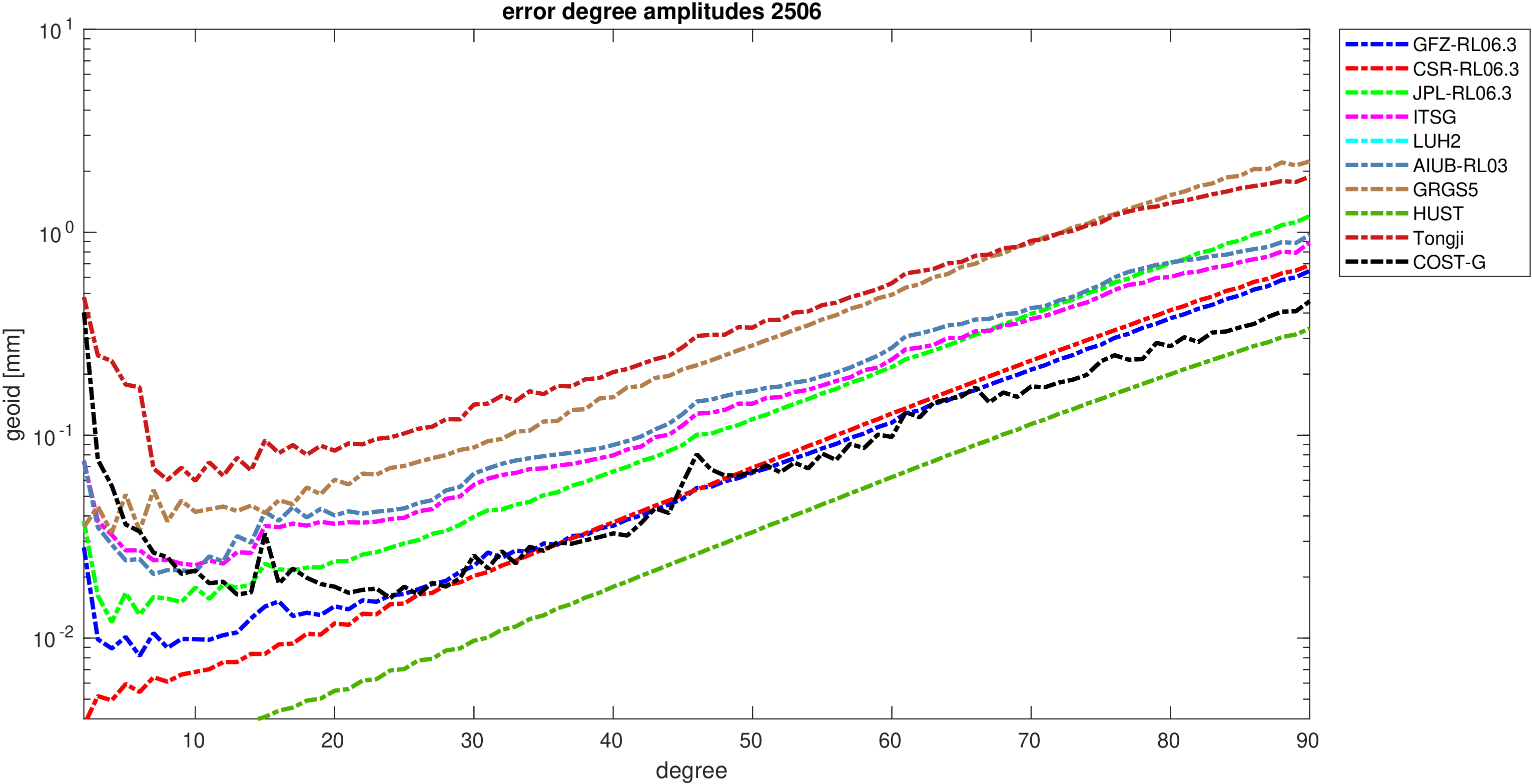 For comparisons in the spherical harmonic domain no filter is applied. Low degree anomalies are dominated by