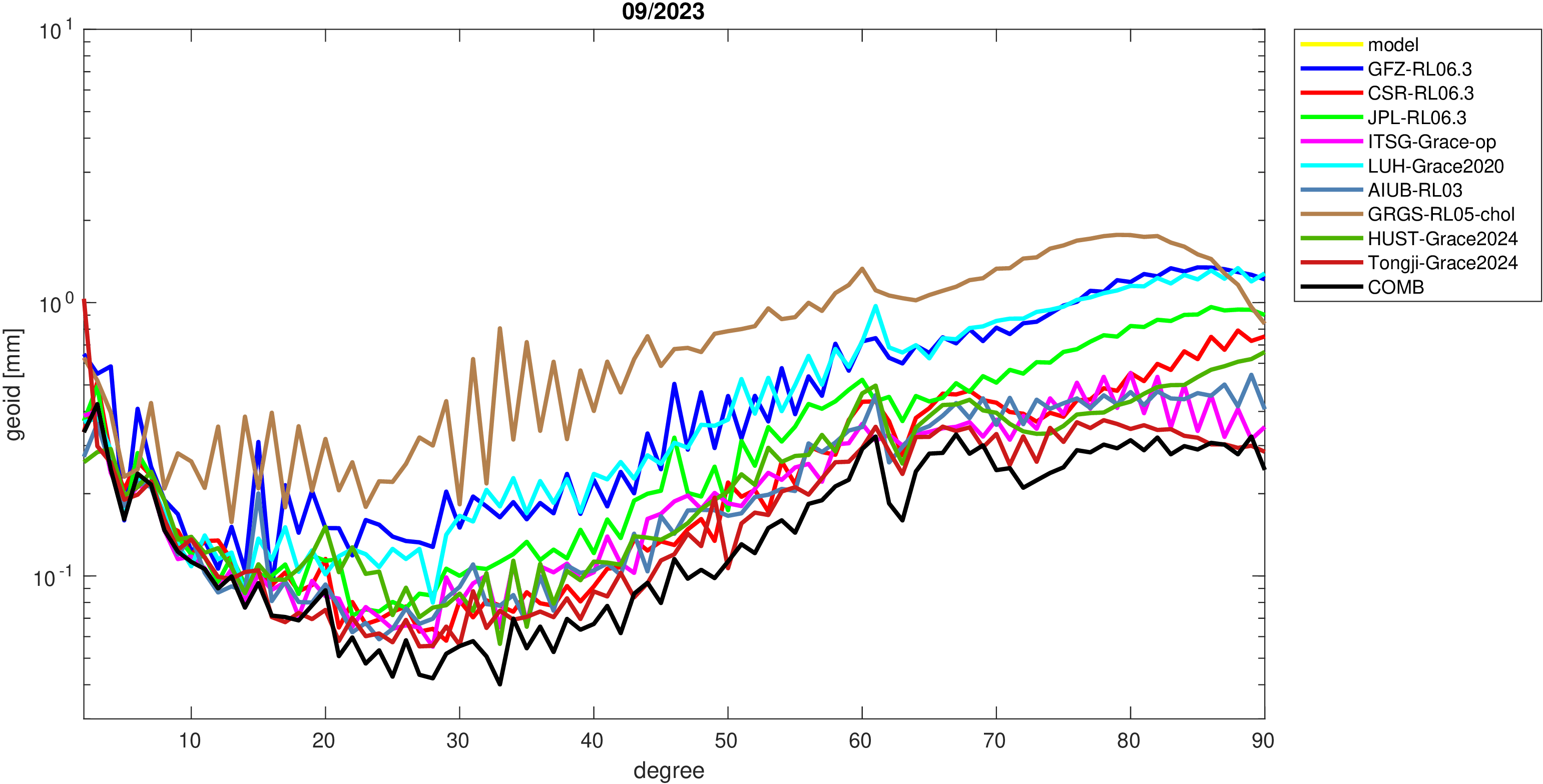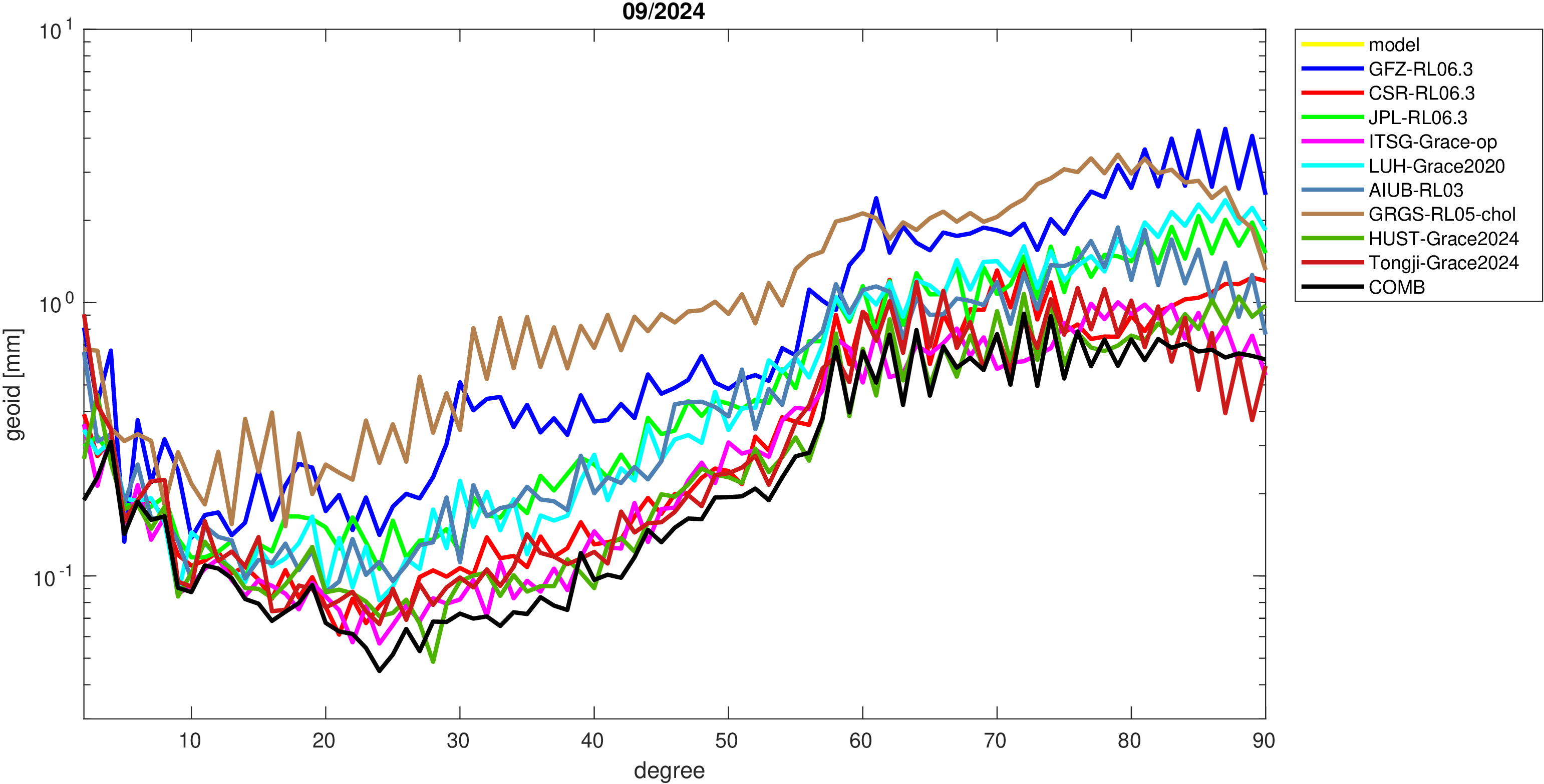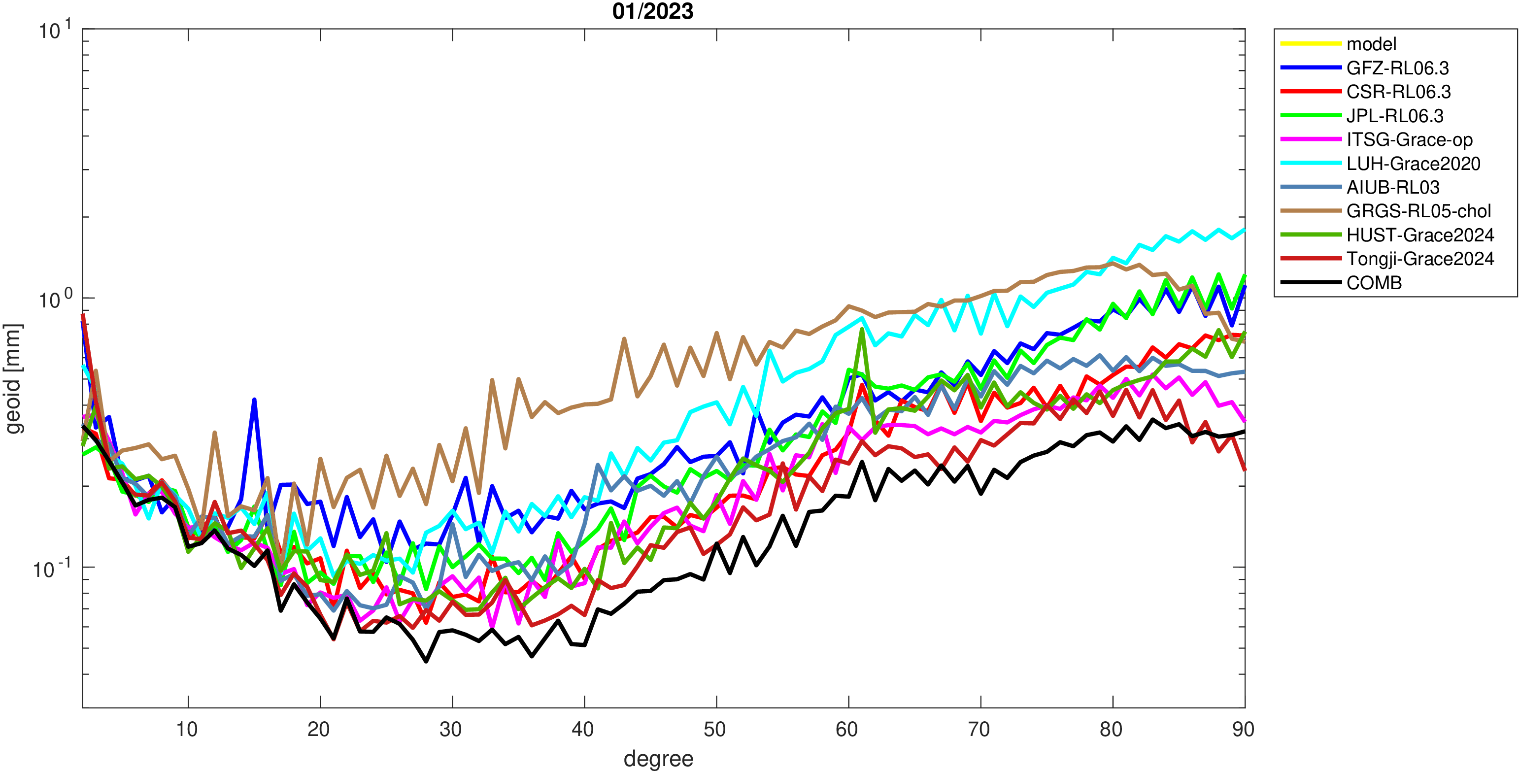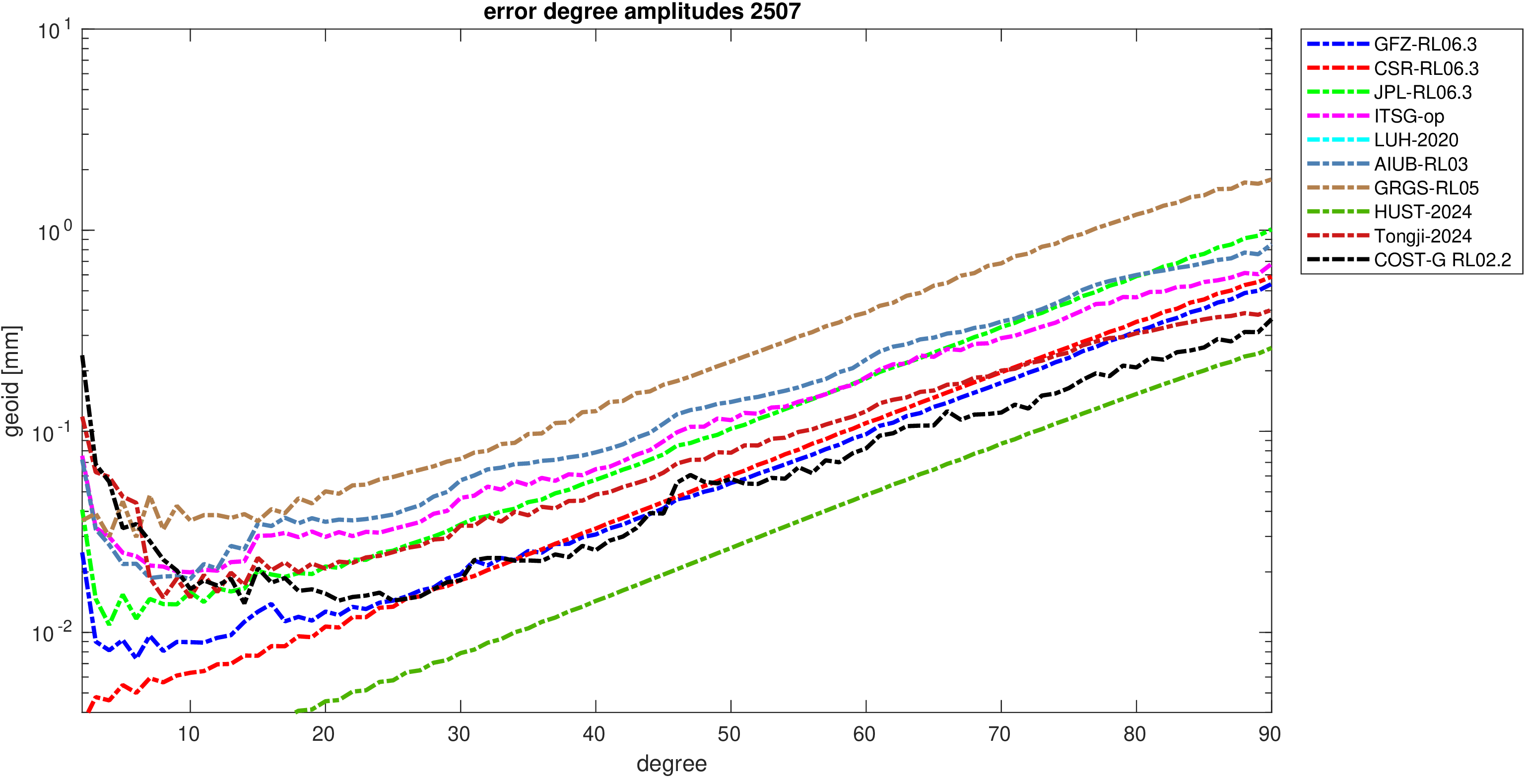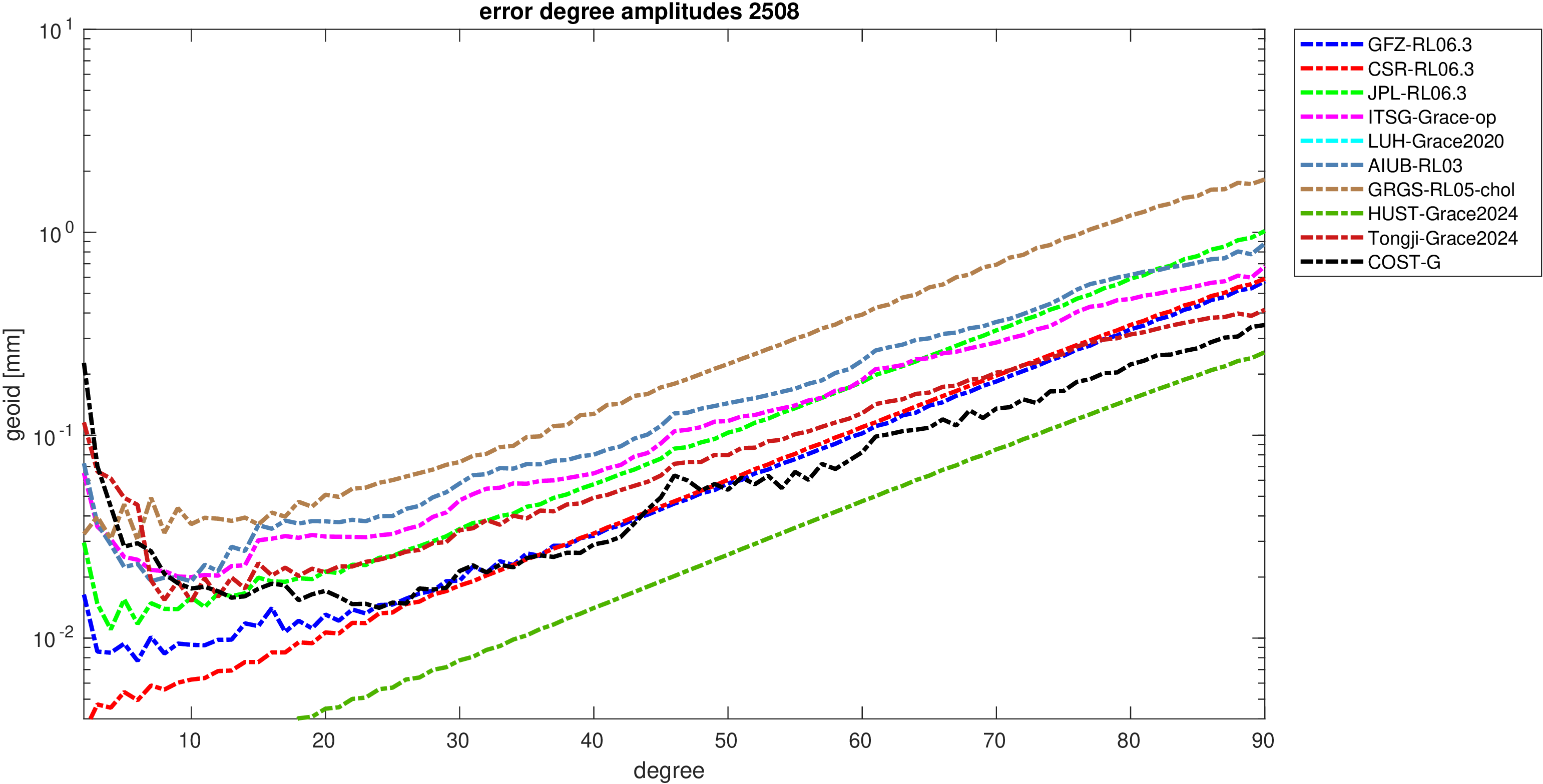 For comparisons in the spherical harmonic domain no filter is applied. Low degree anomalies are dominated by