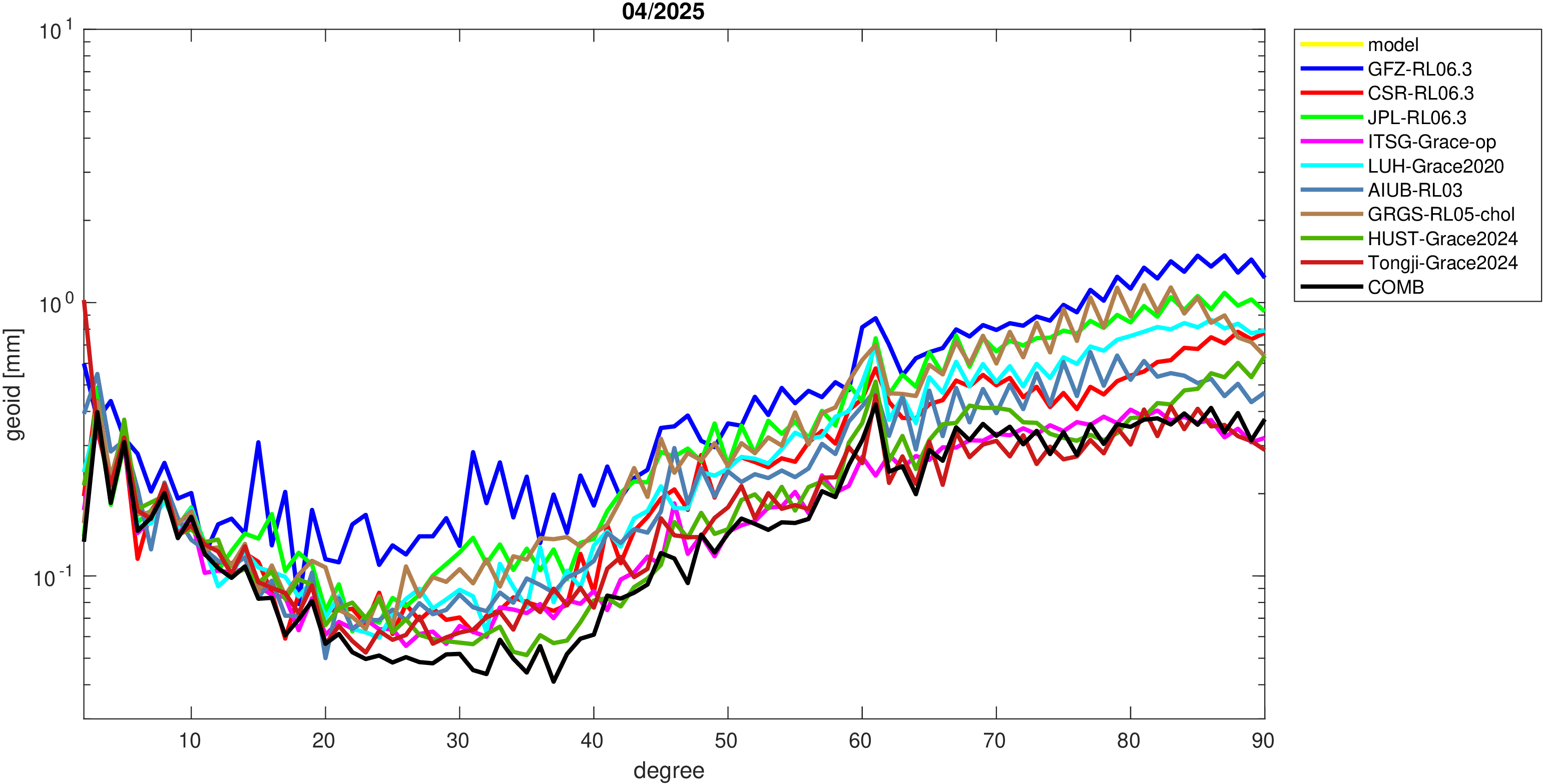 while the higher degree anomalies are dominated by noise.
